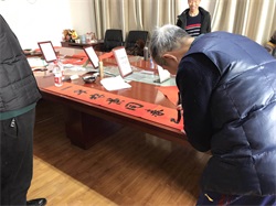 日,咸陽書協(xié)副主席一行三位書法家老師應(yīng)我司總經(jīng)理吳先生的邀請,為公司親筆題字留下了墨寶。為我司員工帶來了特殊的祝福。