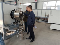 11月14日,山東客戶蒞臨我司交流。我司總經(jīng)理吳先生接待了客戶。在生產(chǎn)車間,吳先生給客戶詳細(xì)的介紹了連續(xù)式回轉(zhuǎn)爐的結(jié)構(gòu)以及和物料如何配合??蛻翎槍凸に嚨呐浜喜糠趾蛥窍壬M入了深入的交流,并且告知吳先生他們做的產(chǎn)品的市場情況以及研發(fā)歷程。