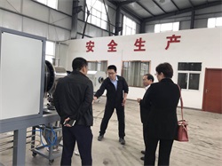 隨后馮工和竇工陪同客戶參觀了生產(chǎn)車間,在設(shè)備前,又對(duì)客戶詳細(xì)了介紹了設(shè)備的工作原理以及研發(fā)部的工作情況。