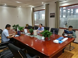 2019年6月21日,河南客戶蒞臨我司考察交流。我司總經(jīng)理吳先生以及銷售部竇工接待了客戶。在會(huì)議室,吳先生為客戶介紹了我司的基本情況以及設(shè)備的使用范圍,客戶根據(jù)自己物料的特點(diǎn)和吳先生做了工藝匹配交流。